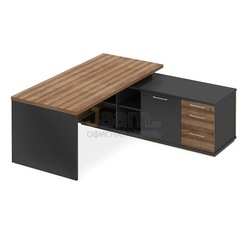 Стол руководителя левый ПК-СЕ-СТ190Х190Л/Д №45458 - столешница: лдсп 38 мм, кромка: пвх 2 мм, покрытие: ламинат, стекло: тонированное.